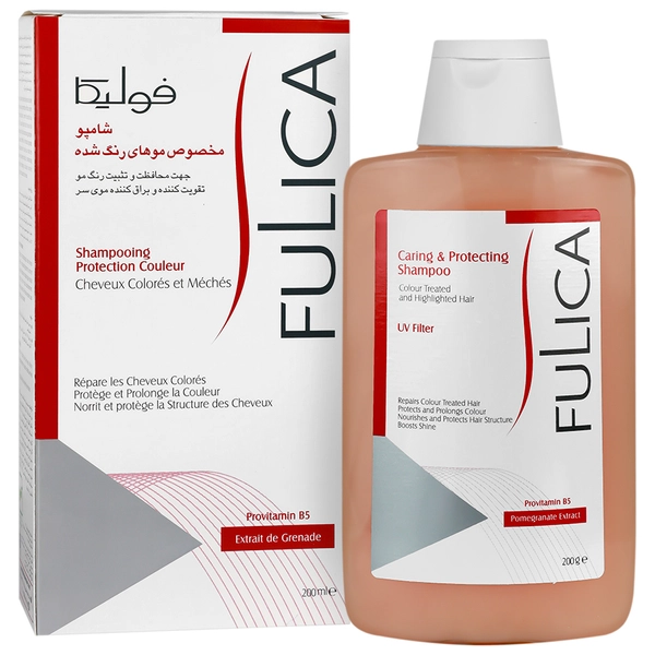 فروشگاهمراقبت از موشامپوشامپو مو فولیکا مدل Caring And Protecting مخصوص موهای رنگ شده حجم 200 میلی‌لیتر